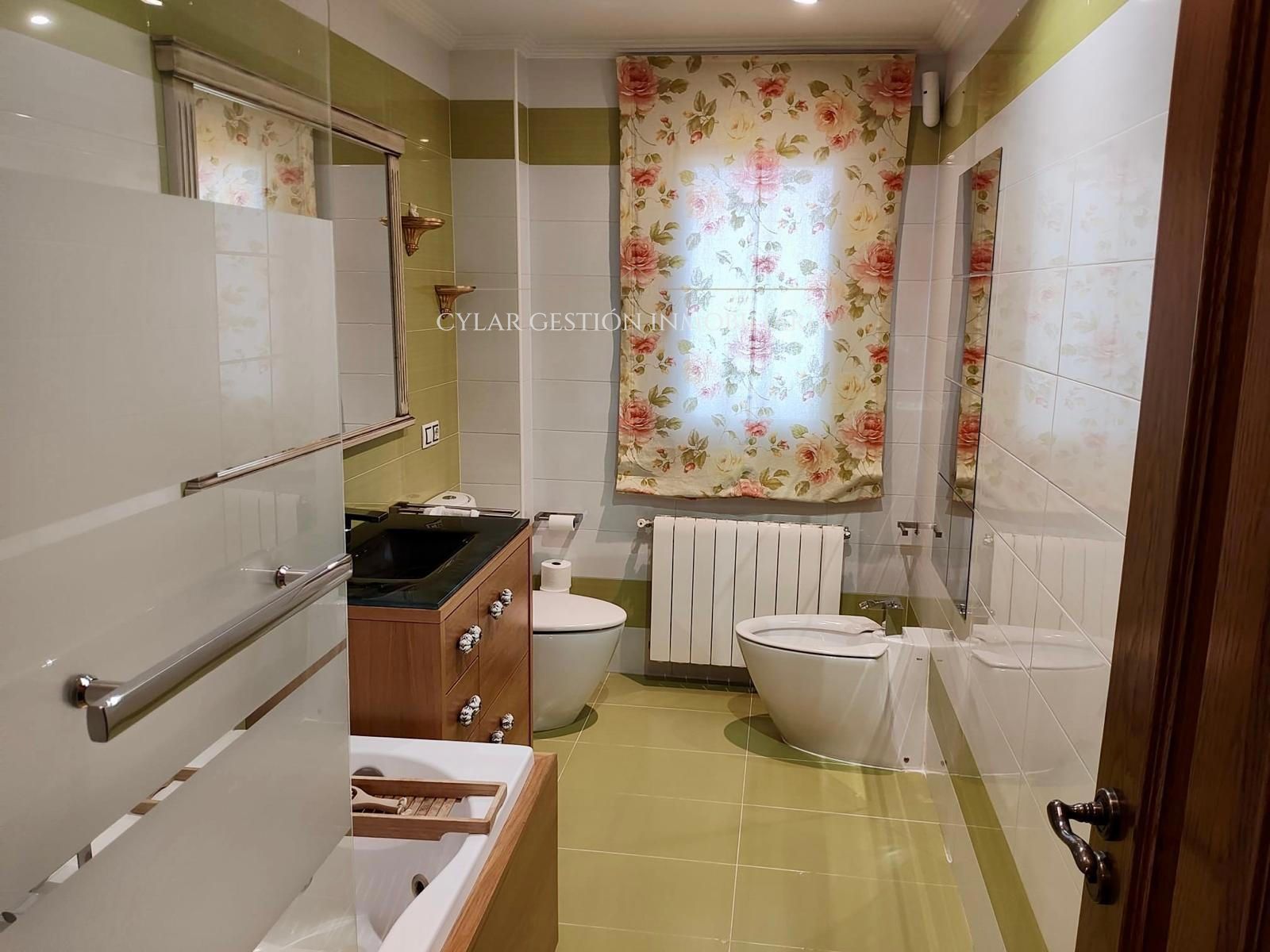 - Baño completo con bañera de hidromasaje y ventana.