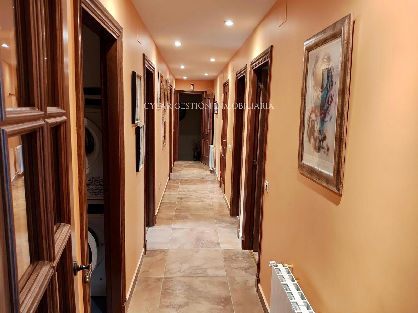 - Amplio hall revestido en madera con armario.
