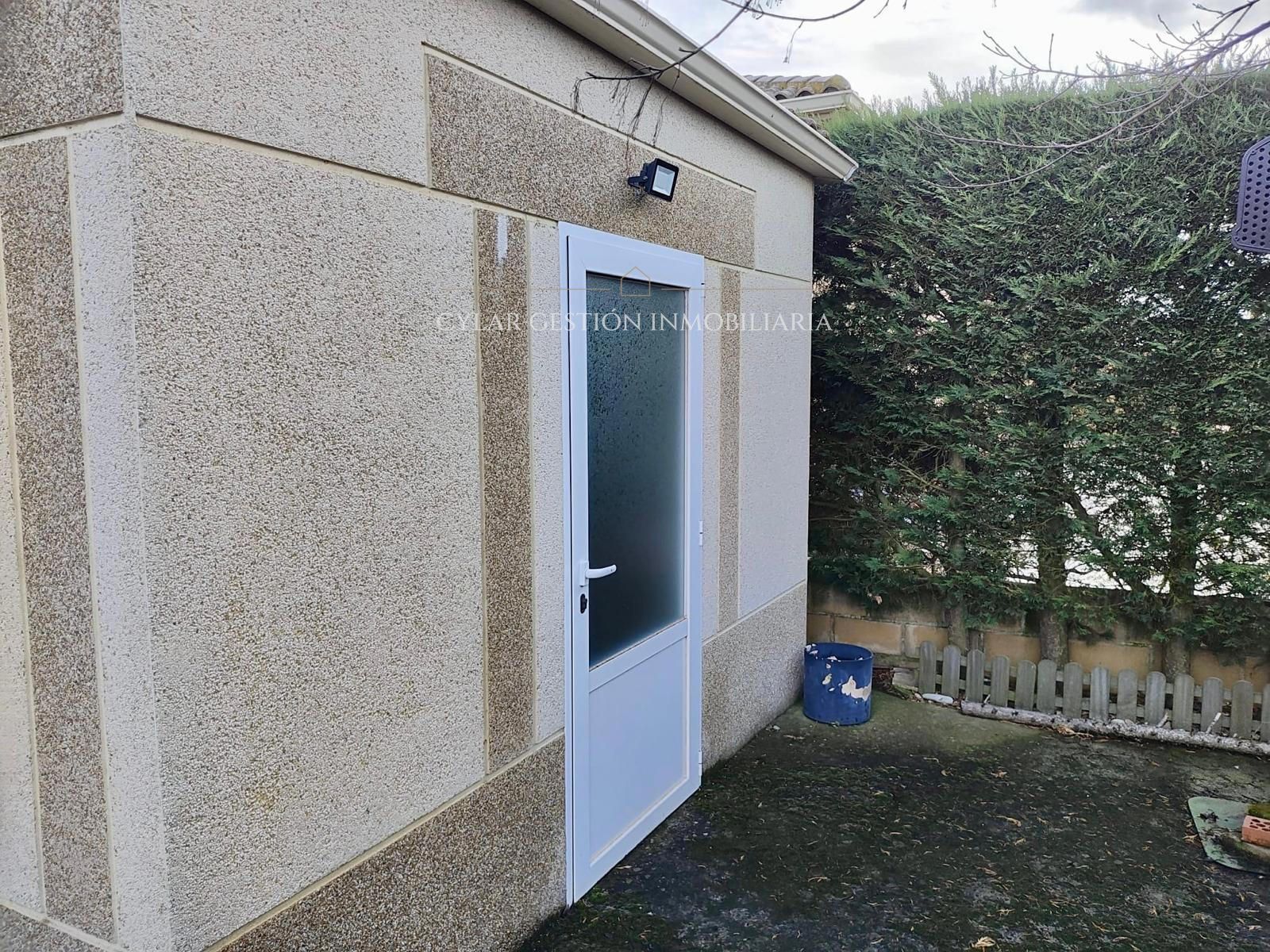 - Armarios exteriores y celosías de madera en acceso al garaje.
