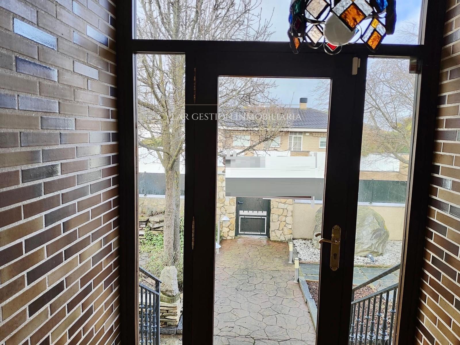 - Puerta principal de madera de iroko.